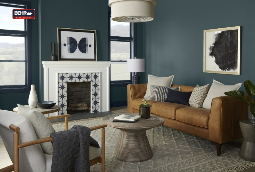 Không gian văn phòng mang phong cách Gothic mang hơi thở miền Tây hoang dã với họa tiết da bò và đồ nội thất cổ màu tối. Màu xanh navy đậm Bermuda Blue 1481 toát lên vẻ huyền bí và quyền lực.