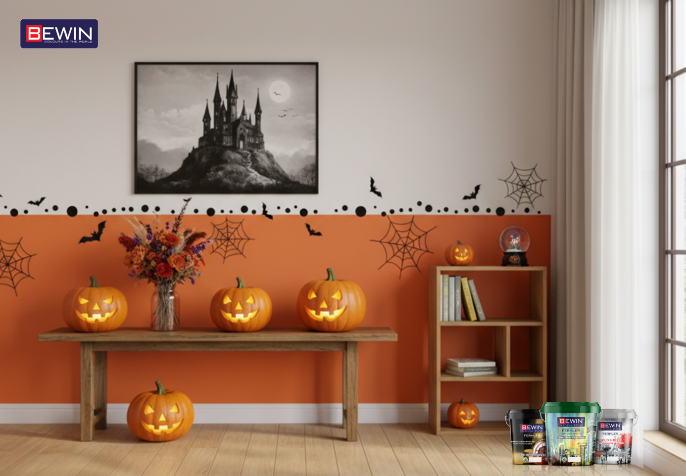 Khi nhắc đến Halloween, chúng ta nghĩ ngay đến bộ đôi màu sắc chủ đạo. Hãy cùng xem cách Sơn Bewin biến hóa chúng để tạo nên một không gian trang trí Halloween vui nhộn.