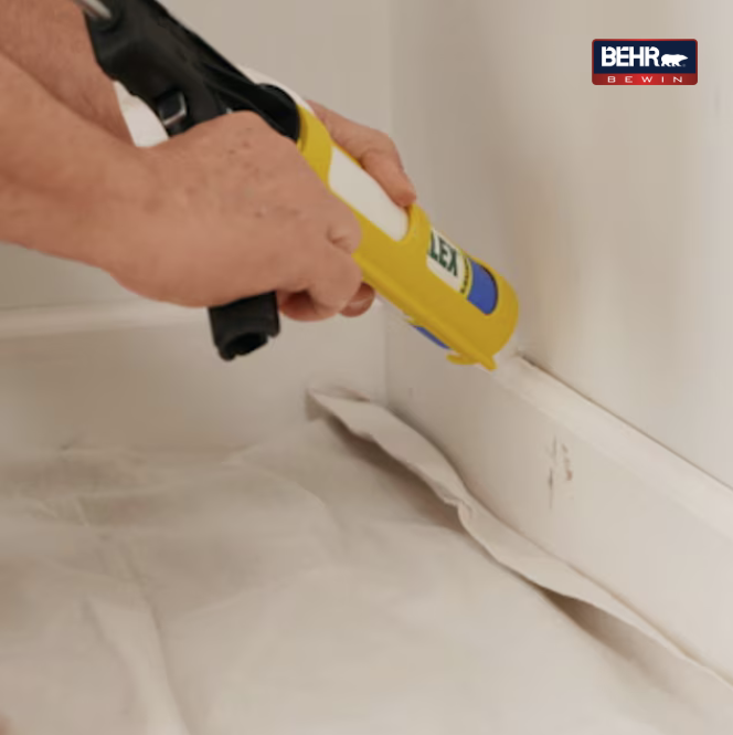 Kiểm tra các chi tiết trang trí, trần nhà và chân tường để xác định xem chúng có cần sửa chữa hay không. Trám các khe hở giữa tường và chi tiết trang trí bằng keo silicon, và đảm bảo keo đã khô hoàn toàn trước khi chuẩn bị sơn.