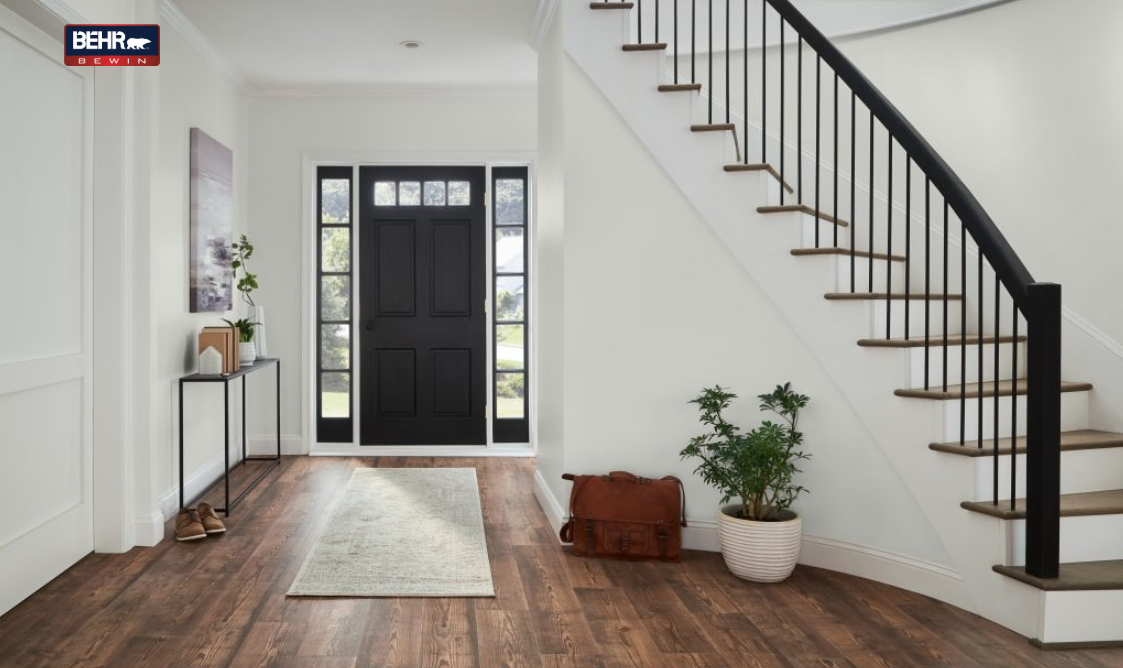 Cuối cùng là hãy xem xét không khí bạn muốn tạo ra khi bước vào nhà. Nếu bạn đang tìm kiếm sự sạch sẽ, đơn giản và tươi mới, hãy thử màu trắng ấm như Cloud White 968. Bất kỳ màu trắng ấm hay trắng lạnh nào cũng sẽ mang lại cảm giác bình tĩnh và thoải mái. Một chút điểm nhấn màu đen sẽ giúp tạo sự cân bằng và tăng thêm vẻ sang trọng cho không gian.