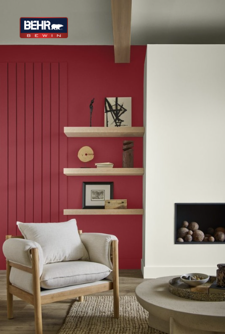Màu Milano Red 1313 mang một vẻ đẹp sang trọng không thể phủ nhận, một sắc đỏ ấm áp như được thiết kế riêng cho không gian mùa đông ấm cúng. Trên bức tường ốp gỗ dọc, màu sắc này làm nổi bật cá tính của căn phòng và tạo ra một bầu không khí chào đón. Được cân bằng bởi khung lò sưởi màu Snowy Pine, không gian trở nên vừa ấn tượng vừa dịu nhẹ. Đó là một khu vực lý tưởng để đọc sách bên lò sưởi, trò chuyện thân mật và tận hưởng những buổi tối thư thái tràn đầy ấm áp và gắn kết.